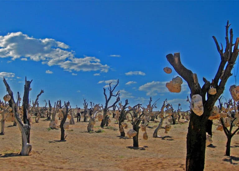 درویش خان کشاورز و دامداری بود که در پی از دست دادن زمین هایش در دهه ی ۴۰، باغی متشکل از درختان خشکیده با میوه هایی از جنس سنگ آفرید. با وجود اینکه عده ای از اهالی هنر، آفریده ی او را جزو اولین موارد چیدمان در هنر ایران می دانند و از طرف دیگر از دهه ی ۷۰ میلادی آثار هنرمندانی چون درویش خان در دسته بندی منحصر به فردی با عنوان هنرمندان در حاشیه Outsider Artists بررسی می شود.